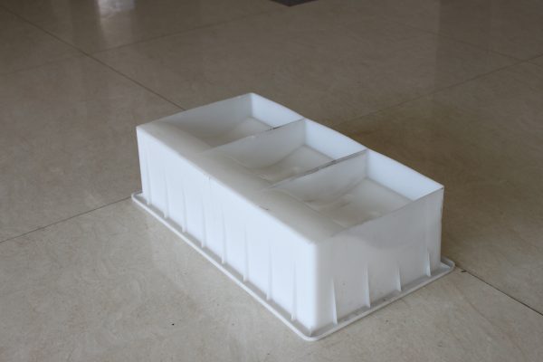 路牙石塑料模具整體外觀為長(zhǎng)方形結(jié)構(gòu),因其尺寸較大,在模具的周邊及底部分別做了加強(qiáng)筋設(shè)計(jì)以保證在實(shí)際水泥路牙石澆筑過(guò)程中的穩(wěn)定性。從模具內(nèi)部的結(jié)構(gòu)我們可以看出,塑料路牙石模具主要采用了S型坡面設(shè)計(jì),六個(gè)塑料堵頭,即所制水泥路牙石的六個(gè)排水孔,實(shí)際應(yīng)用較多的道路段為易積水或地理位置較低區(qū)域。