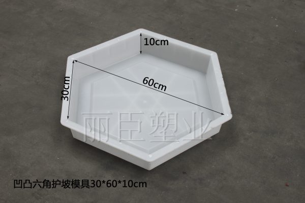 除此樣式的六角護坡磚塑料模具之外,麗臣塑業一樣提供其他樣式用途的護坡磚模具。比如用在高鐵高速線路上的拱形護坡磚模具,用在河道及堤壩附近的水利連鎖護坡磚模具,又或是構件各種生態系統的生態護坡磚模具等等。