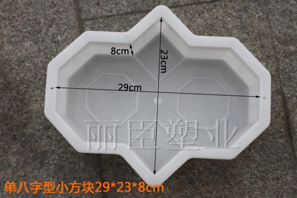 新型設計的廣場彩磚模盒,采用全新聚丙烯注塑加工而來,表面設計以8字圖案為主,側邊以小方格圖案為輔,實質為一款非植草型廣場彩磚模盒,厚度達8厘米,比較適合使用率較高的廣場路面鋪設。