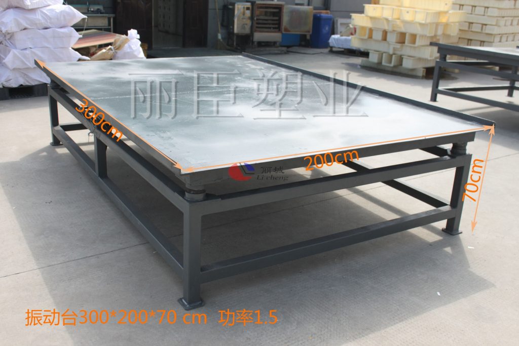 澆筑的塑料模具尺寸不同,在制作振動(dòng)臺(tái)時(shí)使用的功率也不一致。如較為大型的護(hù)欄、電纜槽塑模或定制的大型鋼模具上,使用在振動(dòng)臺(tái)下的振動(dòng)器的功率要有所增大。而對(duì)于小型的護(hù)坡、蓋板以及路沿石塑料模具這一塊上,使用振動(dòng)器上的公率要有所減少。除了在模具澆筑過(guò)程中可以使用外,后期模具在脫模過(guò)程中也能進(jìn)行使用,實(shí)現(xiàn)一機(jī)兩用的效果。