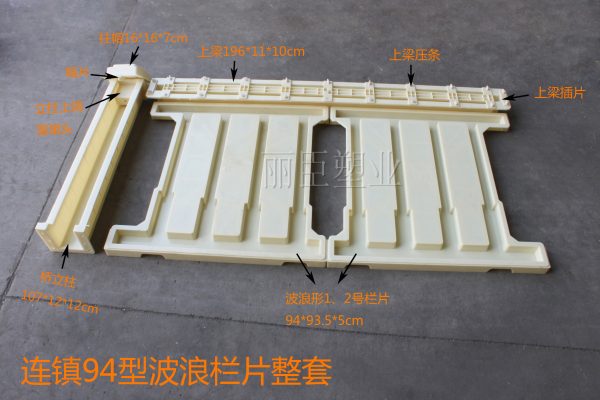 連鎮(zhèn)鐵路柵欄模具欄片在澆筑過程中采用ABS塑料為主要注塑原料,ABS塑料原料質(zhì)地較硬,在對水泥制品模具澆筑時不易發(fā)生變形等情況,也能減少因運(yùn)輸問題而照成的模具破順變形等情況,澆筑成型后的水泥制品柵欄在外觀上呈現(xiàn)波浪形,更能符合符合江南水鄉(xiāng)風(fēng)格。