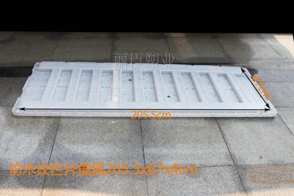 這款仿木紋欄片塑料模具在用料上采用PP聚丙烯塑料為主要注塑原料,欄片模具在使用過程中主要是由兩片木紋欄片組裝成一款欄片模具,其從上部將需要澆筑的混凝土澆灌進去,待混凝土凝結后便能將仿木紋水泥欄片脫模出來,進行在市政基礎美觀建設設上使用。